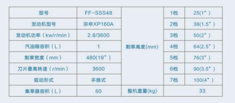 汽油草坪機FF-SSS48相關(guān)參數(shù)