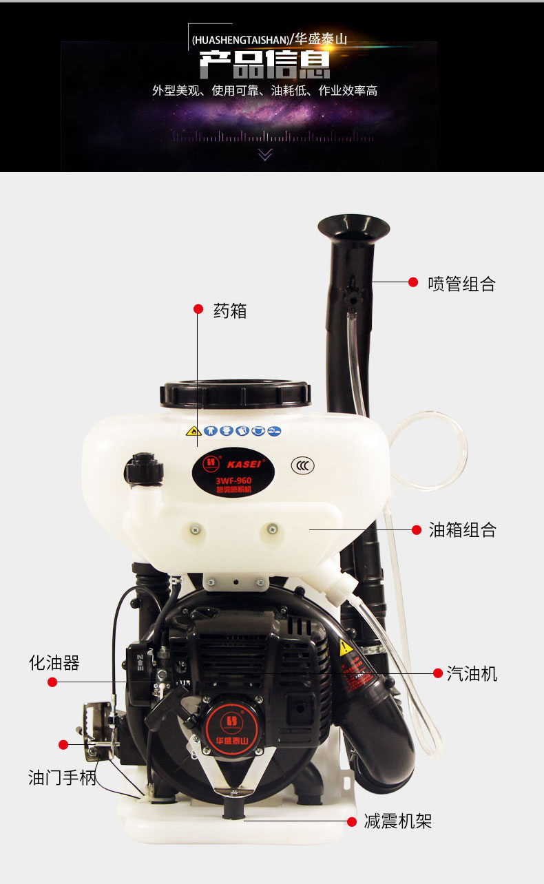 華盛泰山3WF-960機(jī)動(dòng)噴霧器汽油噴霧機(jī)果樹打藥機(jī)農(nóng)用消殺彌霧機(jī)