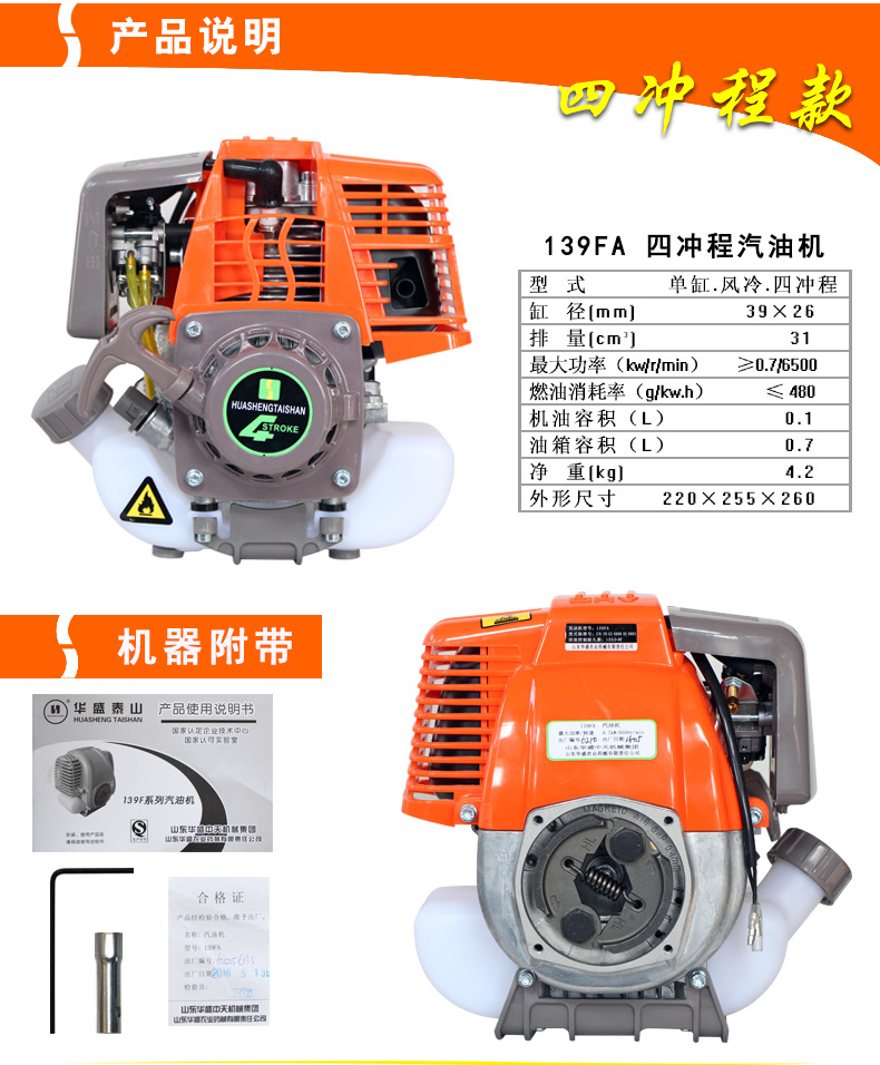 山東華盛割草機頭四沖程汽油機打草機頭修剪機頭挖坑機頭綠籬機頭