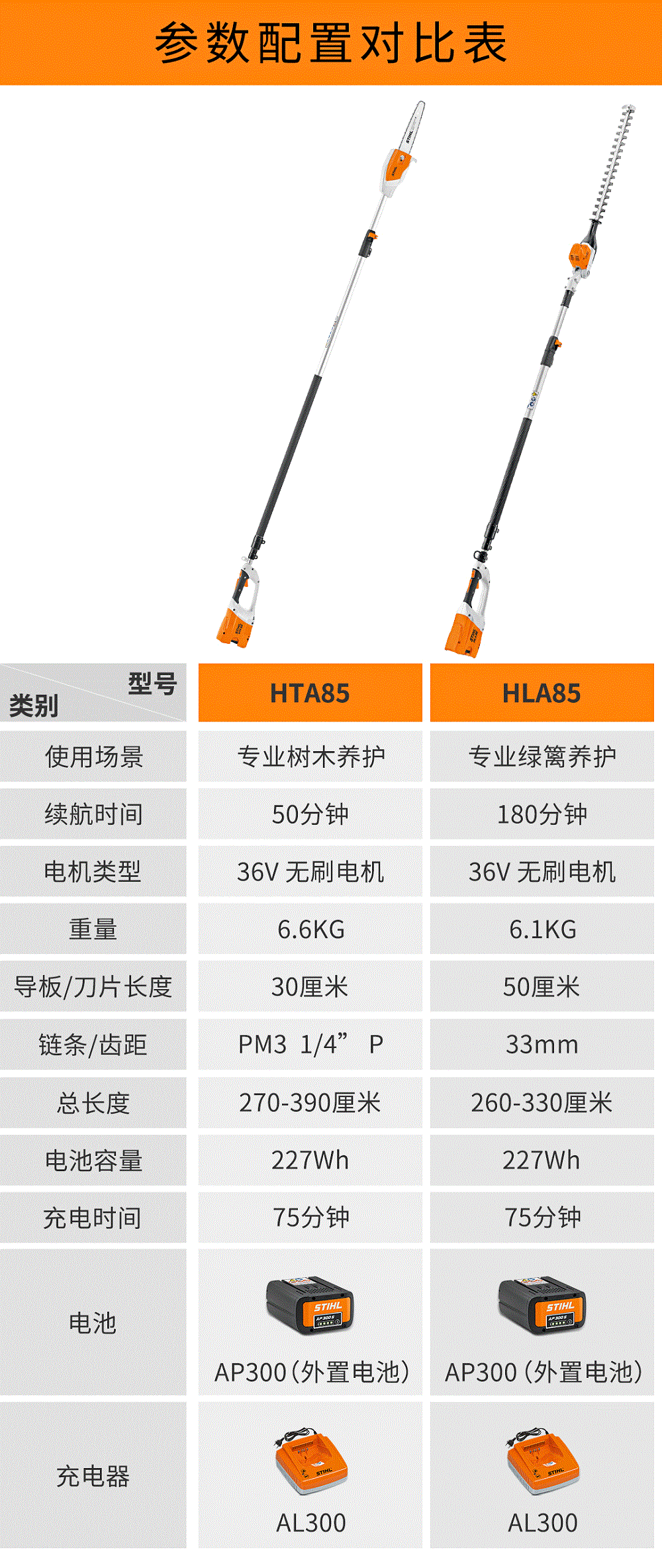 德國斯蒂爾STIHL 充電式商用鋰電高枝剪高枝綠籬剪HLA85/HTA85