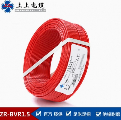 上上電纜廠家 阻燃ZR-BV1.5平方銅芯線單股聚氯乙烯絕緣家裝電線