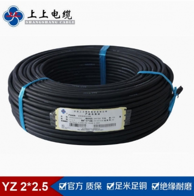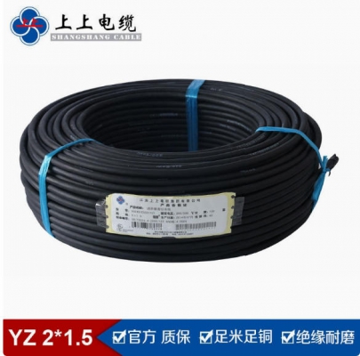上上電纜國(guó)標(biāo)通用橡套軟電纜YZ2*1.5平方銅芯電纜橡膠線CCC