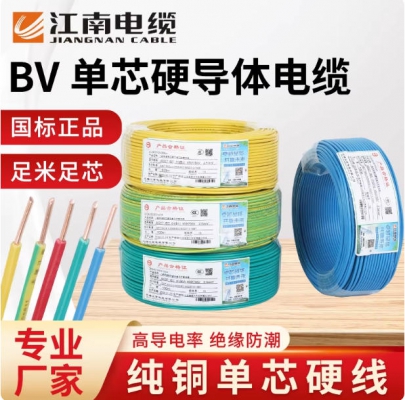 江南單芯電線硬線家用bv2.5家裝電纜國(guó)標(biāo)1.5/4/6/10/16平方銅芯線