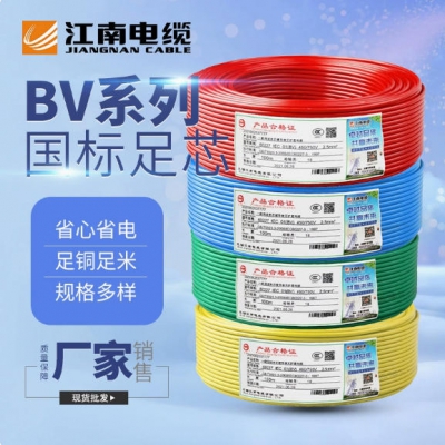 江南電纜國(guó)標(biāo)BV電線1.5/2.5/4/6/10/16平方銅芯單股硬線家裝用線
