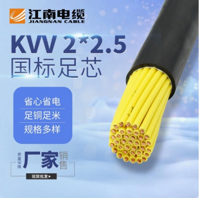 江南電纜五彩KVV 2*2.5平方黑色護(hù)套銅芯聚氯乙烯 KVV控制電纜