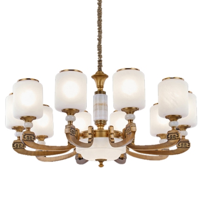品杰家用客廳餐廳玻璃吊燈?新中式全銅燈定制吊燈