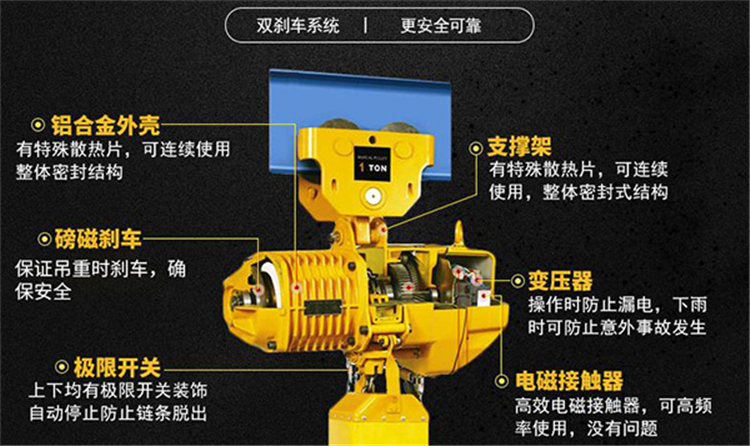 固定式環(huán)鏈電動(dòng)葫蘆 鋁合金外殼:有特殊散熱片,可連續(xù)使用,整體密封結(jié)構(gòu)。