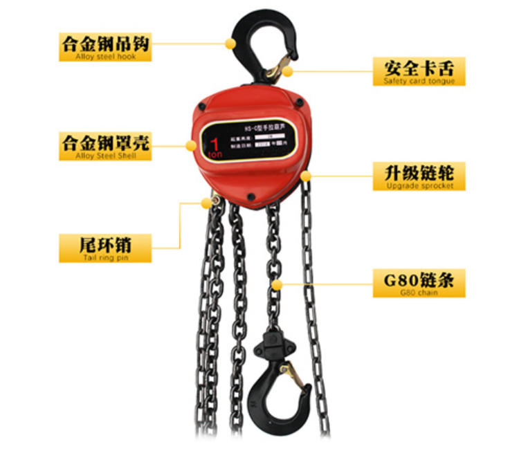 HS-C型手拉葫蘆主要機件選用鋼材制造,鏈條采用800Mpa