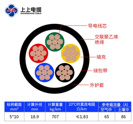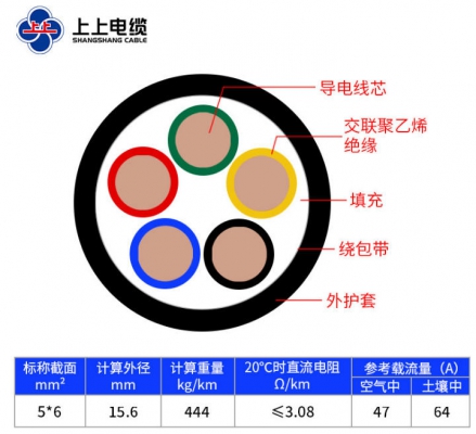 上上電纜 ZC-YJV 3*6/3*10/5*6/5*10充電樁電纜阻燃國標(biāo)線