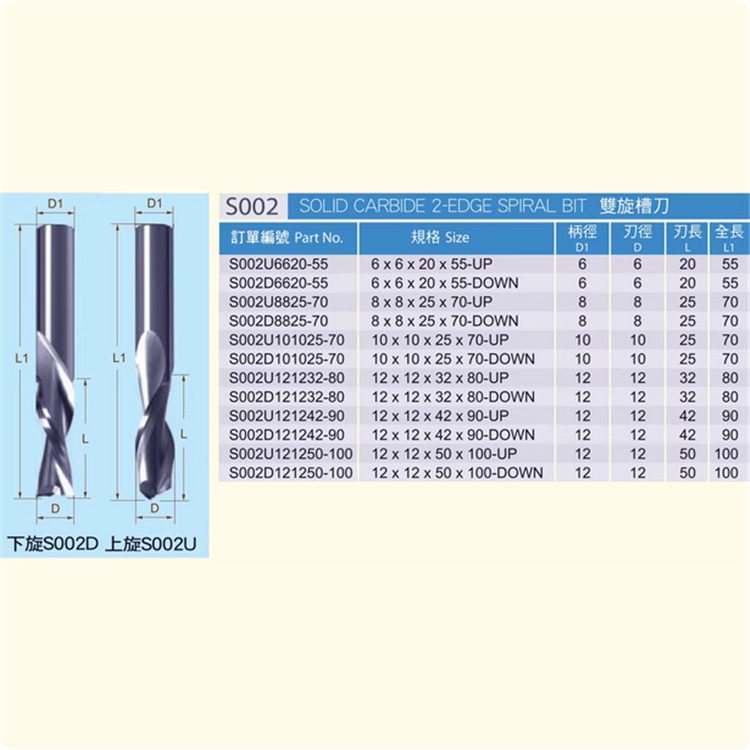 虎鯊S002雙旋槽刀 整體合金TCT螺旋銑刀木工板材單貼面開(kāi)料拉槽