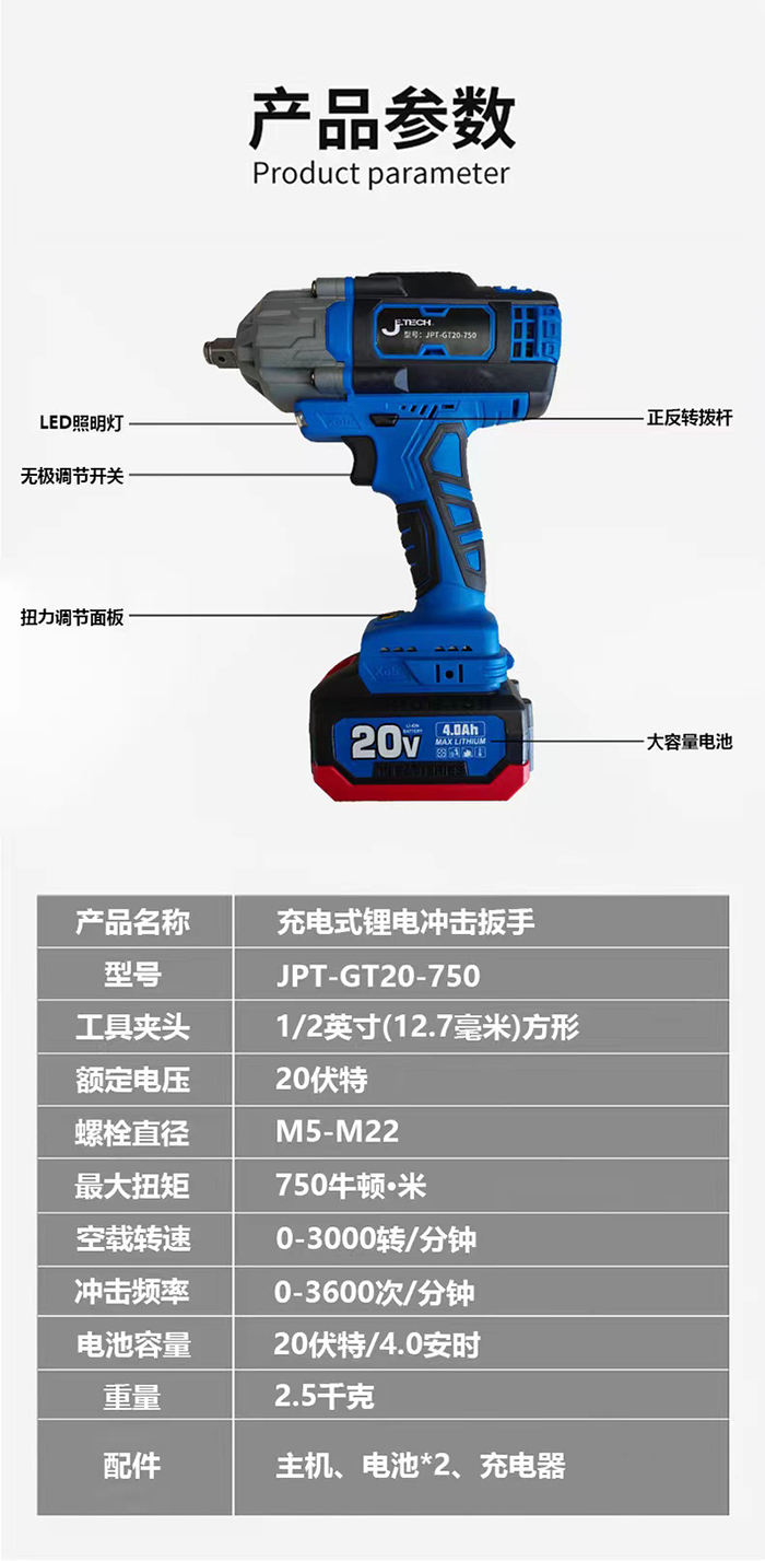 捷科JETECH鋰電沖擊扳手JPT-GT20-550 JPT-GT20-750