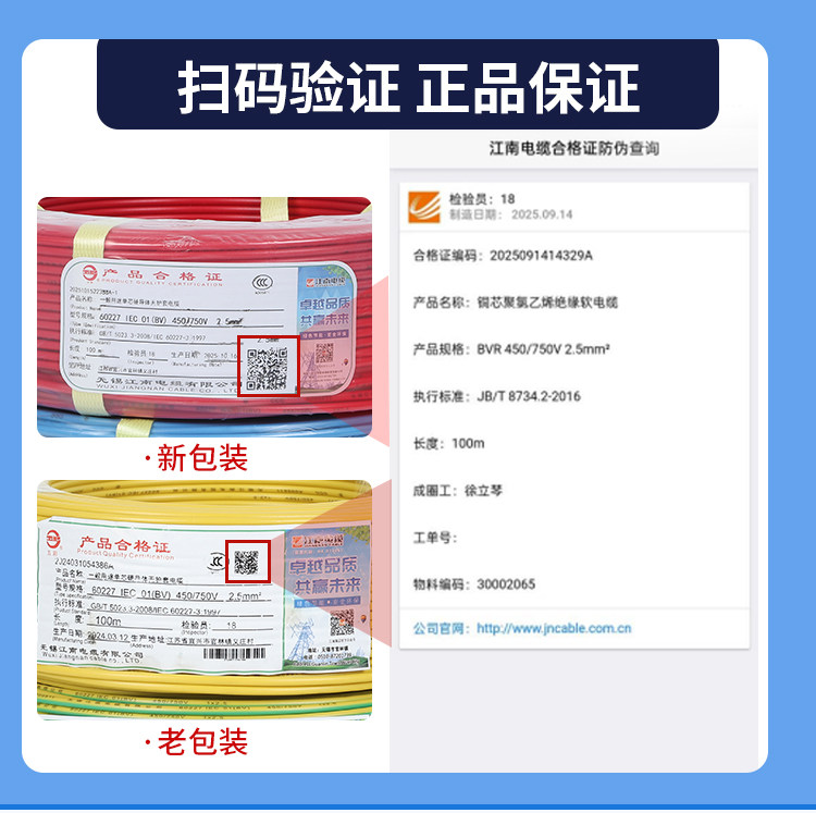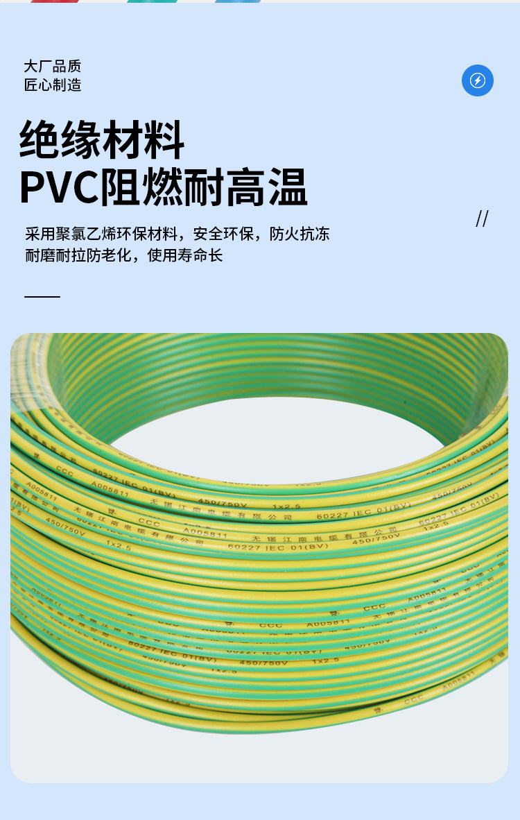 江南單芯電線硬線家用bv2.5家裝電纜國標(biāo)1.5/4/6/10/16平方銅芯線