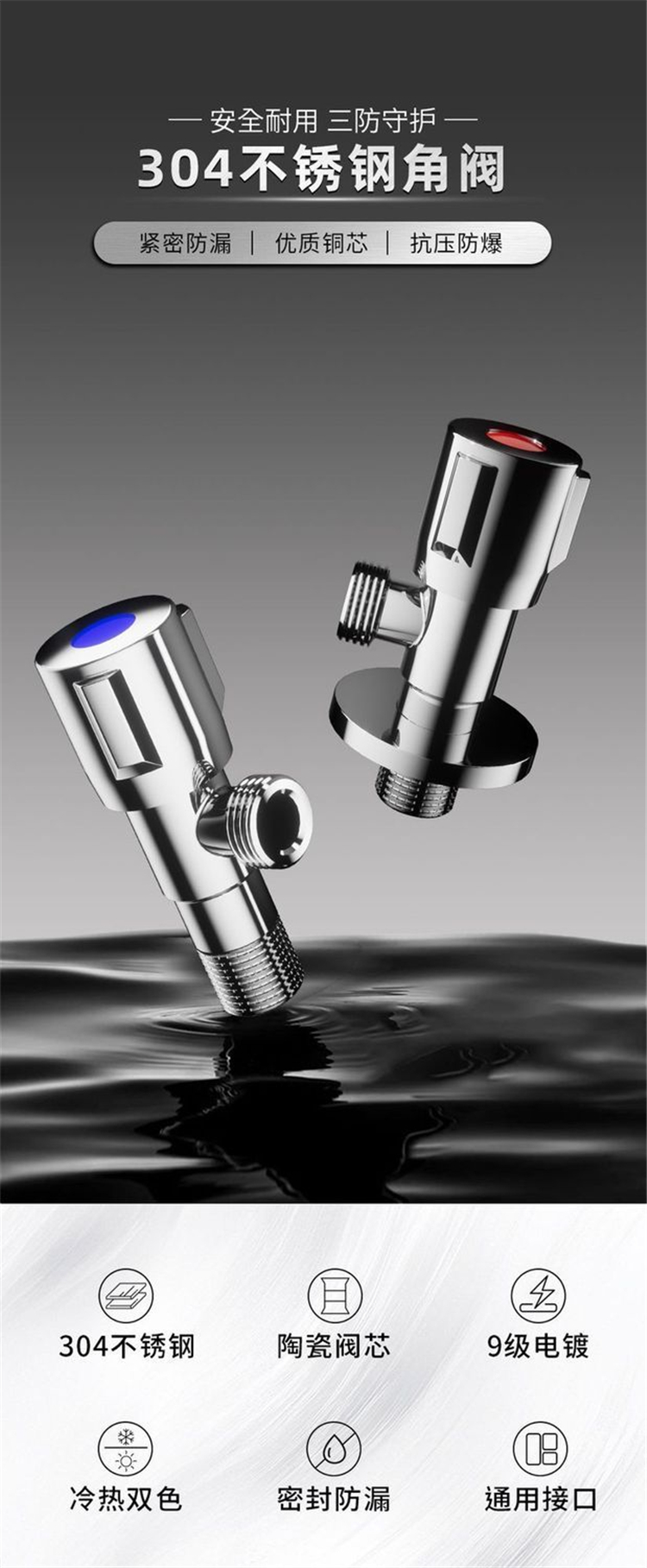 中財不銹鋼角閥加厚防爆冷熱三角閥 馬桶熱水器進水閥4分開關水閥