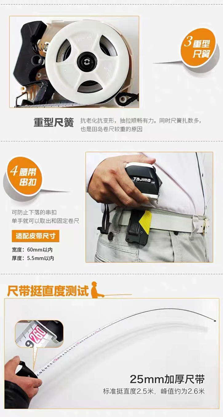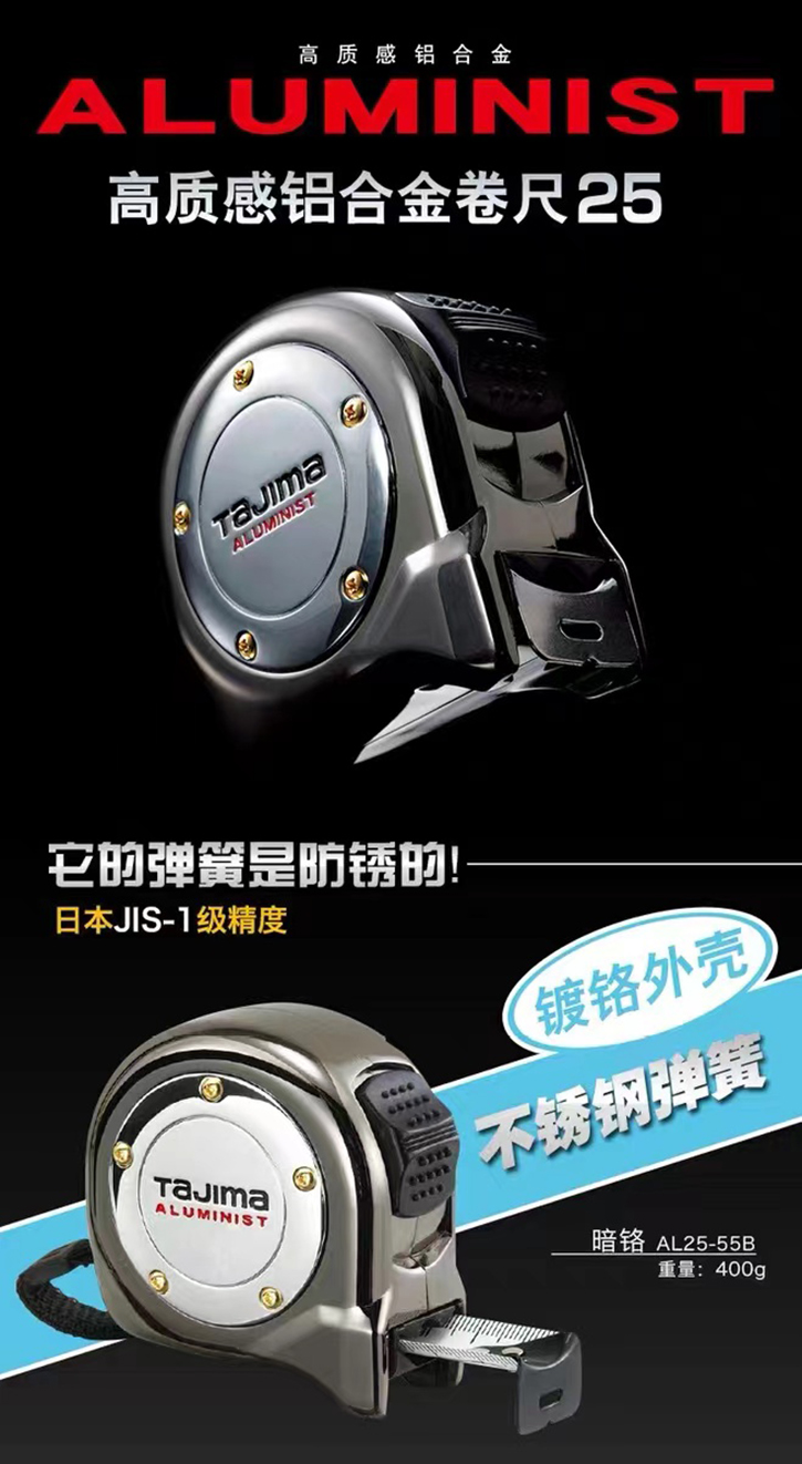 日本田島卷尺3.5米/5米/5.5米公制雙面刻度鋼卷尺盒尺木工測(cè)量工具