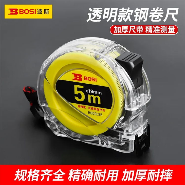 波斯卷尺加厚透明盒尺5米耐用高精度7.5不銹鋼10米尺耐磨鋼尺木工