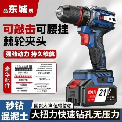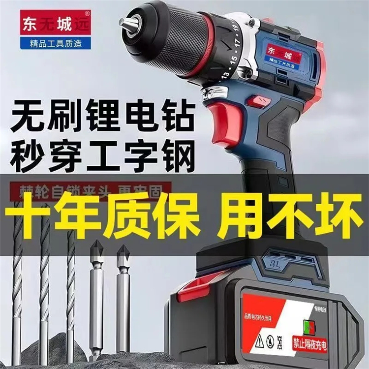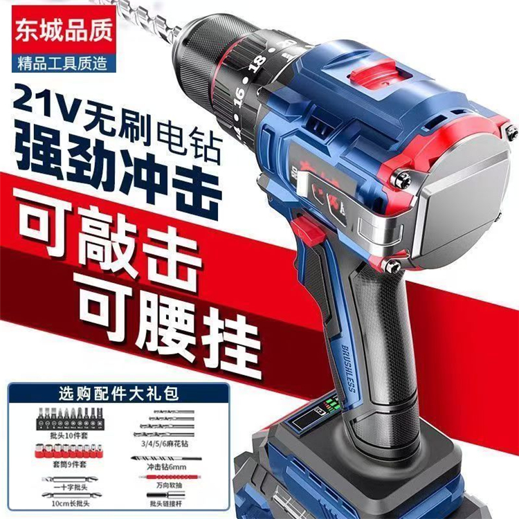 東城沖擊款無刷手電鉆大功率鋰電池充電式多功能沖擊鉆電動螺絲刀