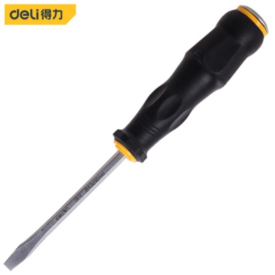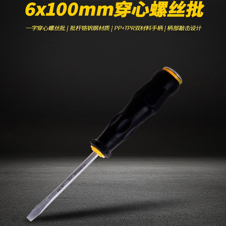 得力鉻釩鋼橡膠柄一字穿心螺絲刀敲擊起子防滑沖擊螺絲刀批