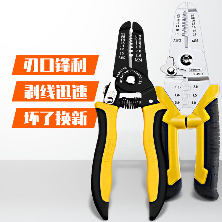 得力工具剝線鉗電工鉗子剝皮器扒線鉗子多功能扒皮鉗拔線刀DL4991