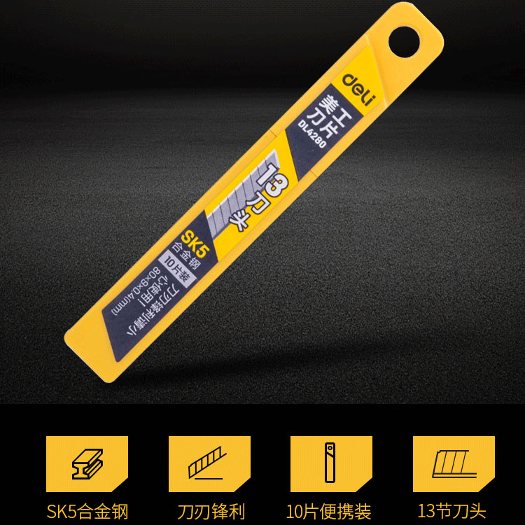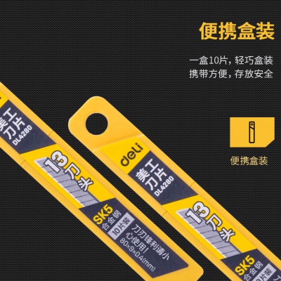 得力(deli)?15刀頭SK4合金鋼美工刀片10片裝18mm可拆設(shè)計(jì)便攜盒裝DL-DP
