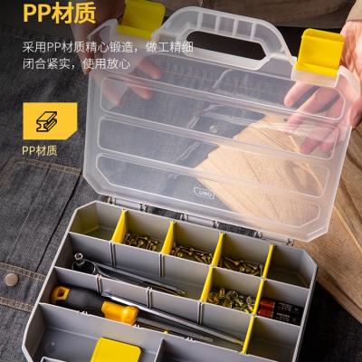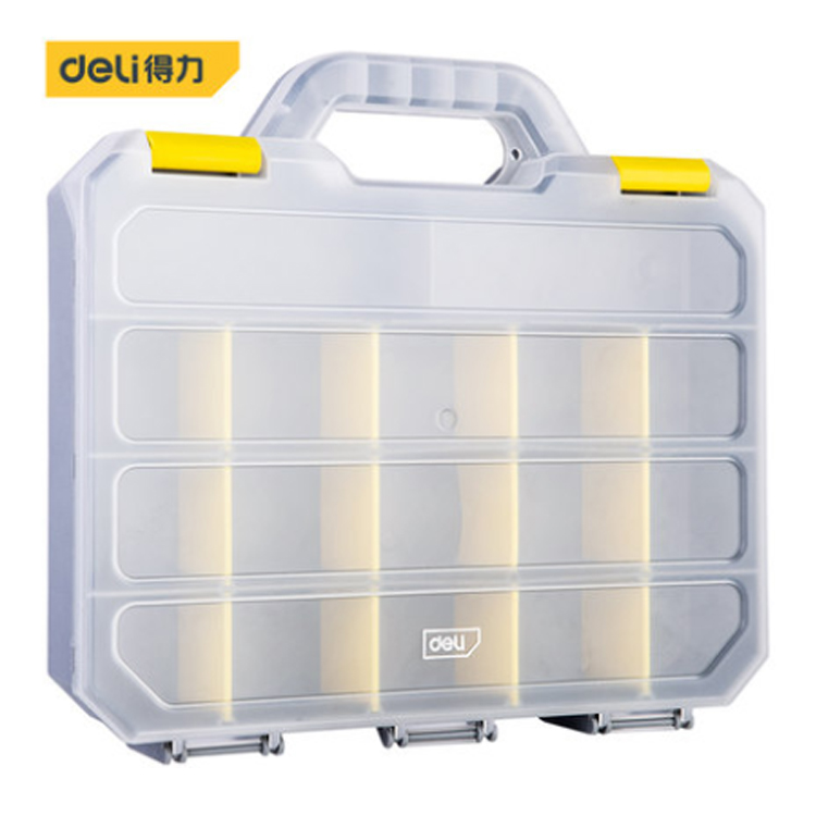 得力工具透明盒塑料盒零件盒多格帶蓋收納盒分類工具箱電子元件盒