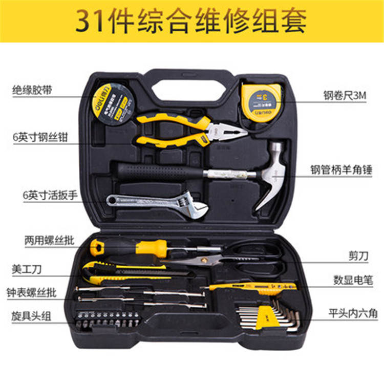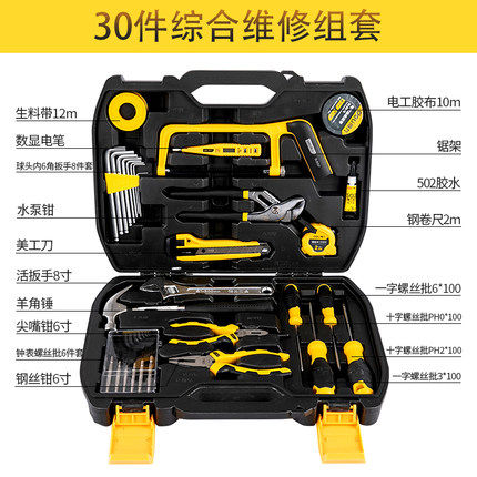 得力工具家用手工具套裝五金工具箱電工木工多功能專用維修工具