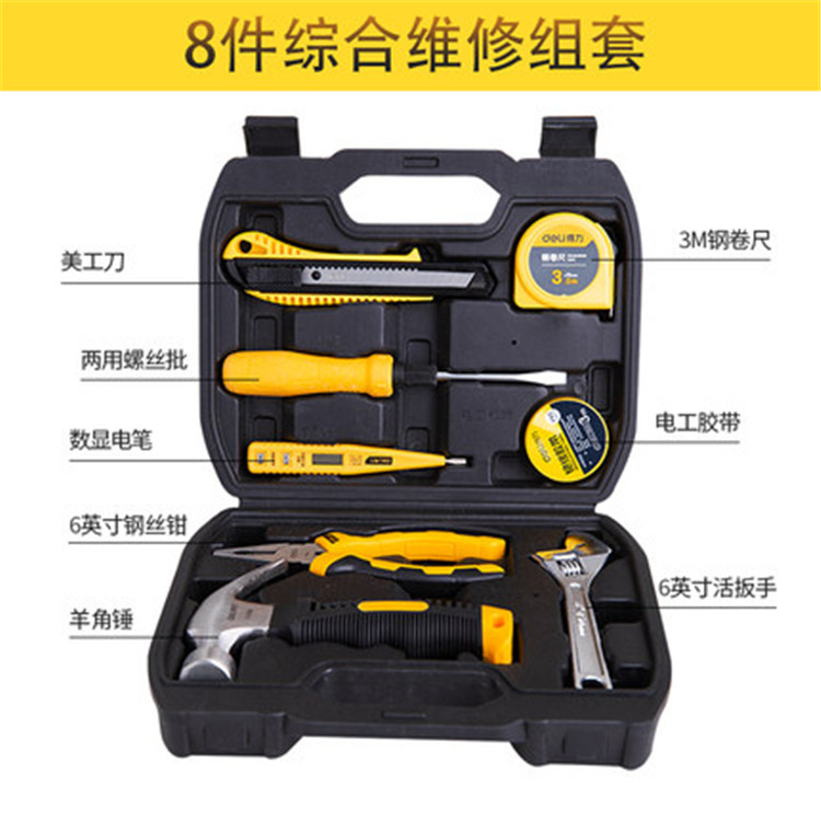 得力工具8件綜合維修組套五金工具箱多功能套裝
