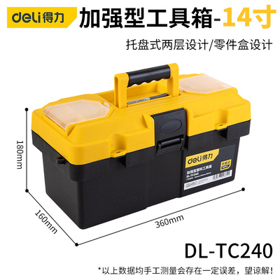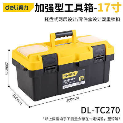 得力工具箱加強(qiáng)型多功能手提式塑料大號(hào)家用維修工具盒工具收納箱