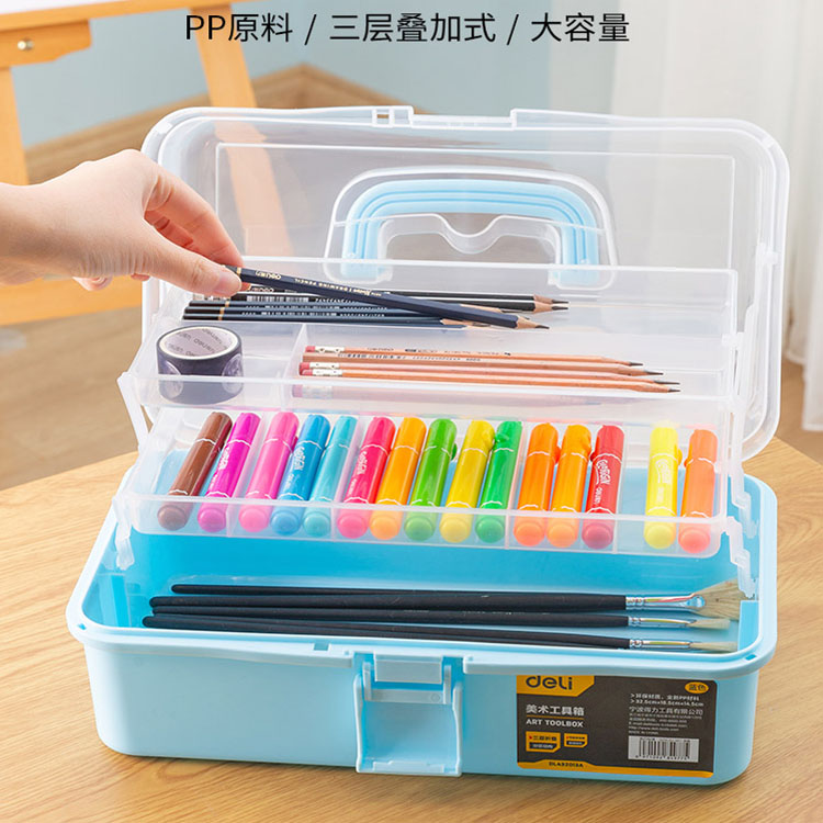 得力工具箱美術(shù)工具箱13寸多功能工具文具收納整理箱工具箱