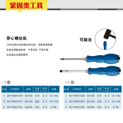 東成穿心螺絲刀十字一字帶強(qiáng)磁超硬可敲擊工業(yè)級(jí)改錐平口梅花起子