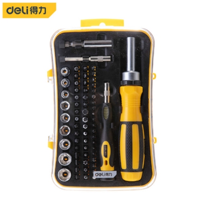 得力螺絲批65件套(黃)精密儀器螺絲刀維修工具快速雙向超硬
