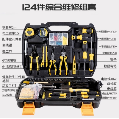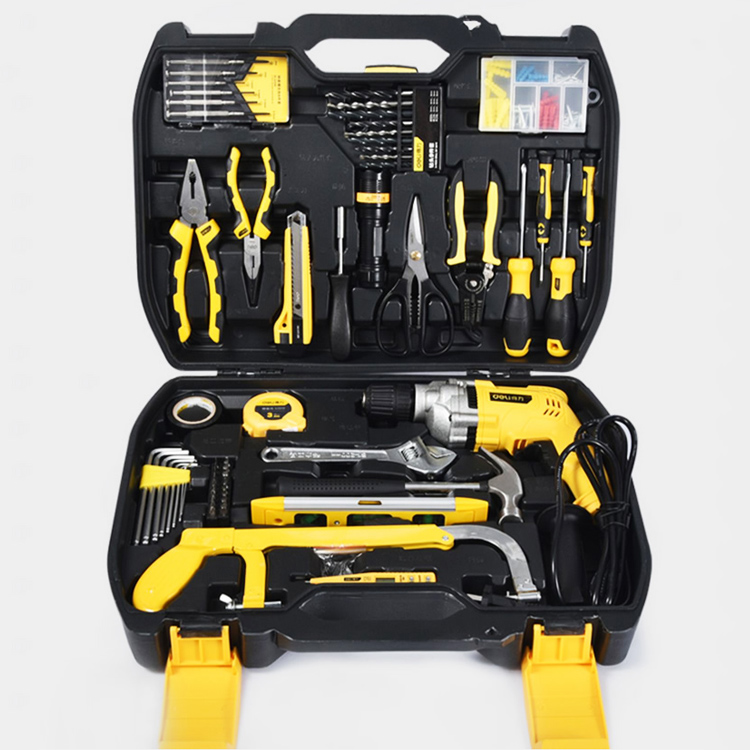 得力多功能家用工具箱五金工具電工手動綜合維修組套電鉆套裝