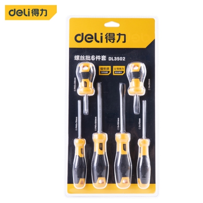 得力工具DL3502螺絲批6件套?鉻釩鋼批頭?一字十字套裝PH1*100