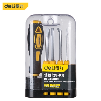得力工具多用螺絲批鉻釩鋼螺絲刀起子改錐組套9件套DL636009