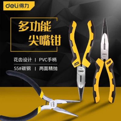 得力尖嘴鉗子6寸?多功能電工手鉗子五金工具尖口鉗工業(yè)級尖頭鉗