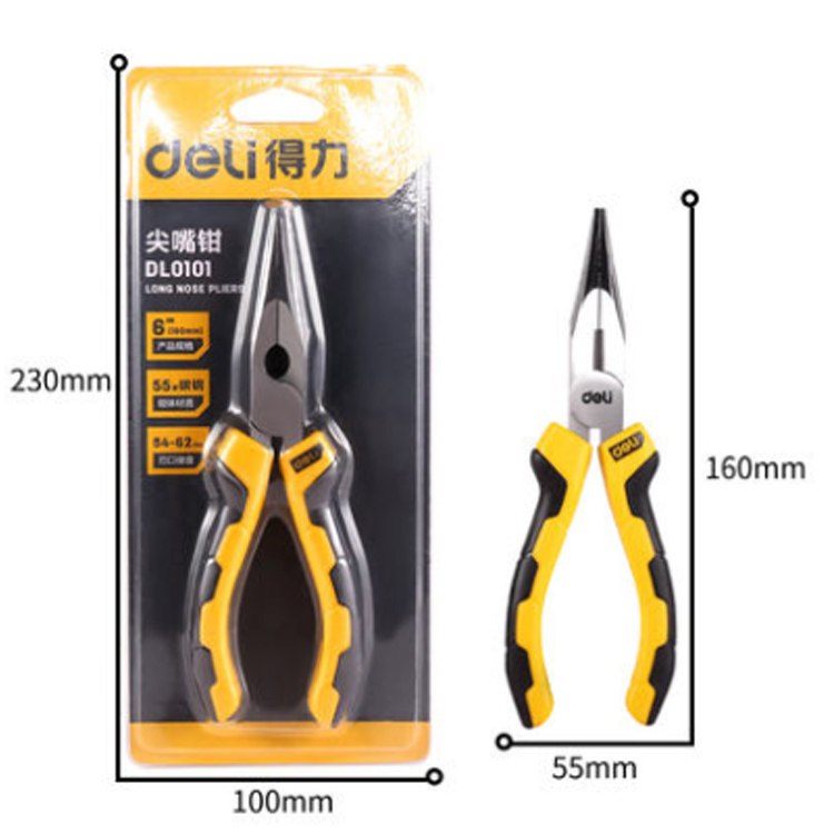 得力尖嘴鉗子6寸多功能電工鉗子五金工具尖口鉗尖頭鉻釩鋼夾持鉗