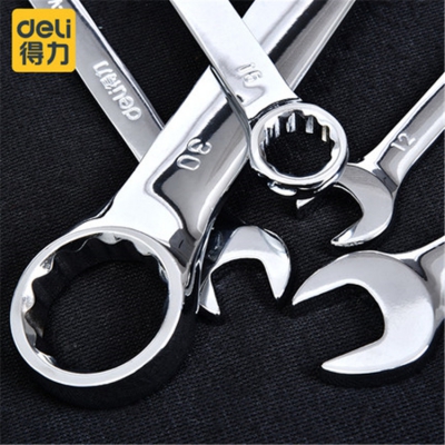 得力鏡面兩用扳手五金工具兩用汽修扳手雙頭呆扳手雙開口架子工扳子