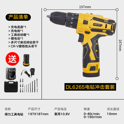 得力充電式電鉆充電鉆手電鉆電起子電動螺絲刀