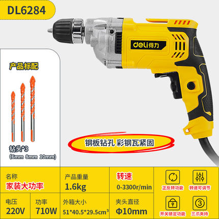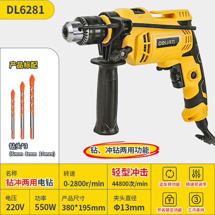 得力沖擊電鉆家用輕型手電鉆兩用電起子沖擊鉆電動螺絲刀