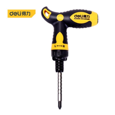 得力(deli)?多功能雙向T型伸縮棘輪兩用螺絲刀鉻釩鋼省力螺絲批一十字起子改錐?DL626012